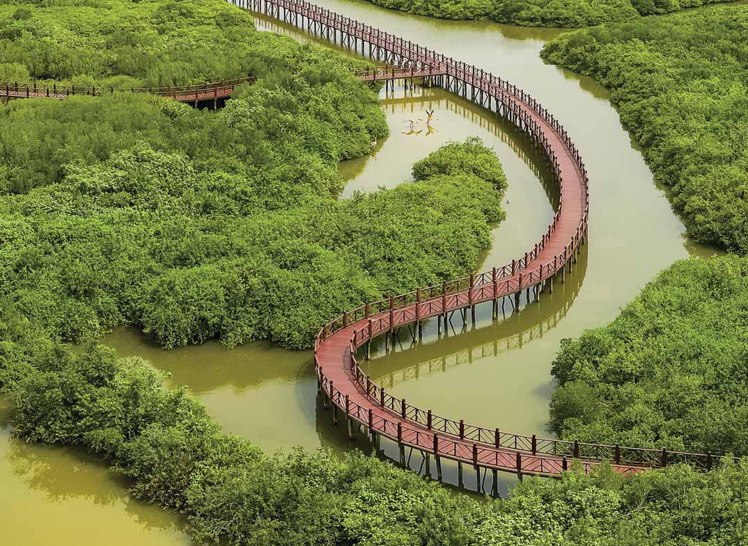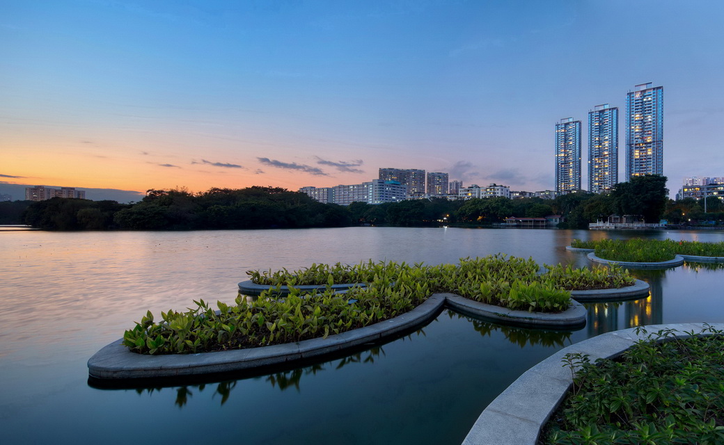 被誉为前海“绿芯”的桂湾公园,,,,,是前海第一个永世性、水廊道公园。。。。。项目共拥有100 多种、6000 多棵乔木,,,,,绿地率72% 以上。。。。;;;;;谏畔仍颍,,,,项目结构红树林海水湿地约6 万平方米,,,,,淡水湿地约2 万平方米,,,,,打造“会呼吸...