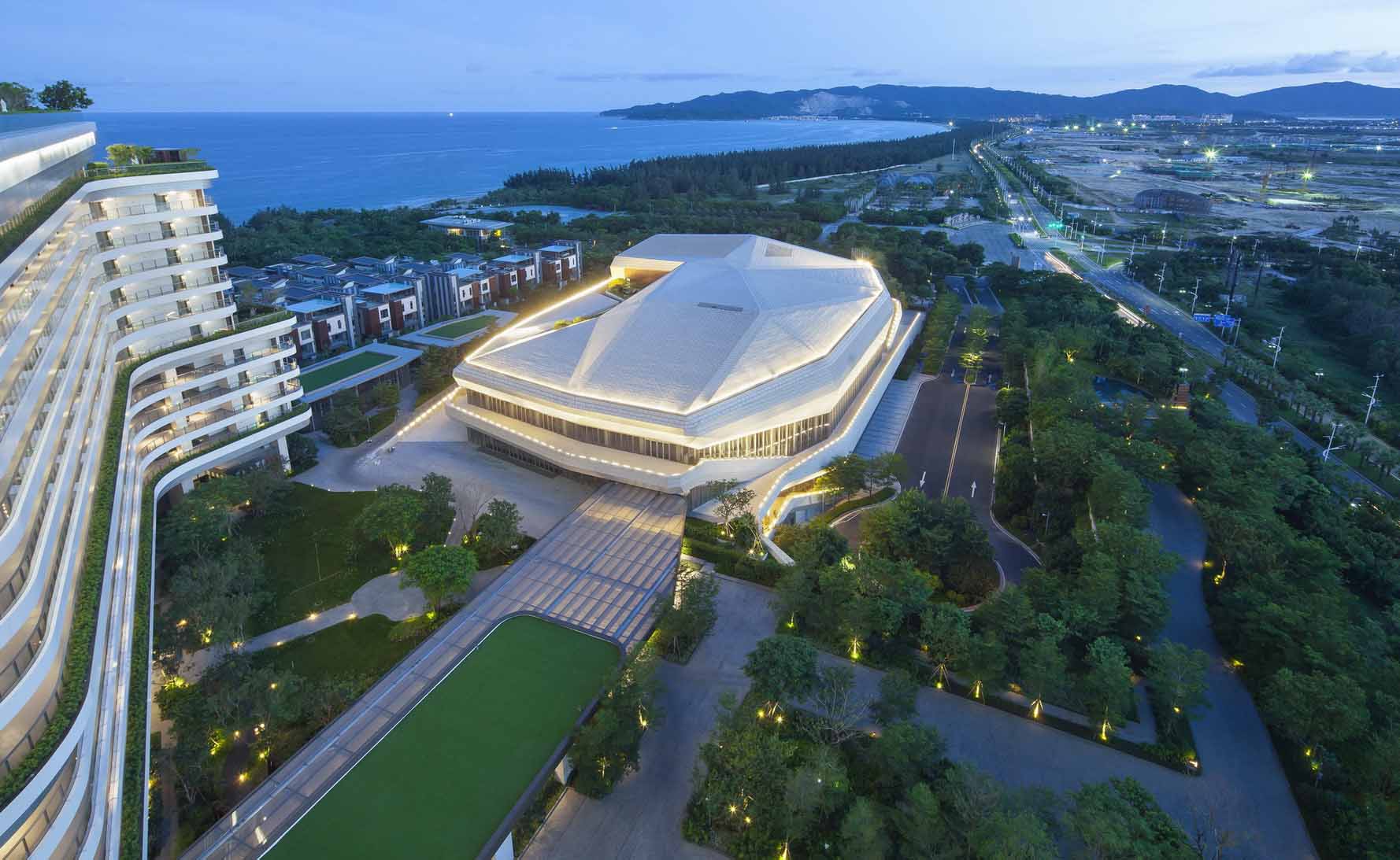 保利崖州湾科技城聚会中心立于崖州海湾之滨,,,,,兼有悠长的海岸线。。。。。项目全心打造了浪漫的水景与追光旋转礼堂,,,,,通过现代流动的艺术手法,,,,,团结崖州的海风与斜阳,,,,,修建起浪漫度假的景观体验,,,,,营造出关于恋爱的陶醉式体验空...