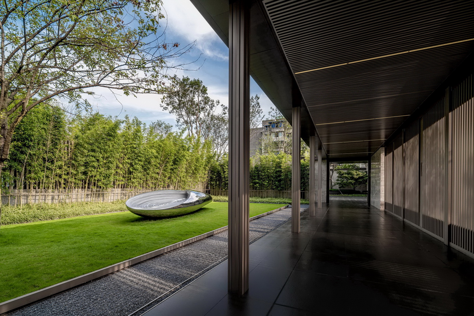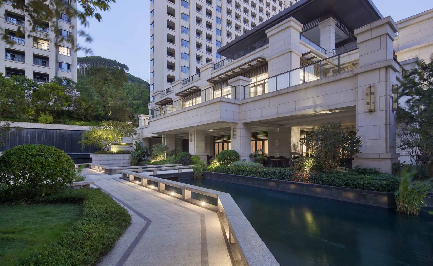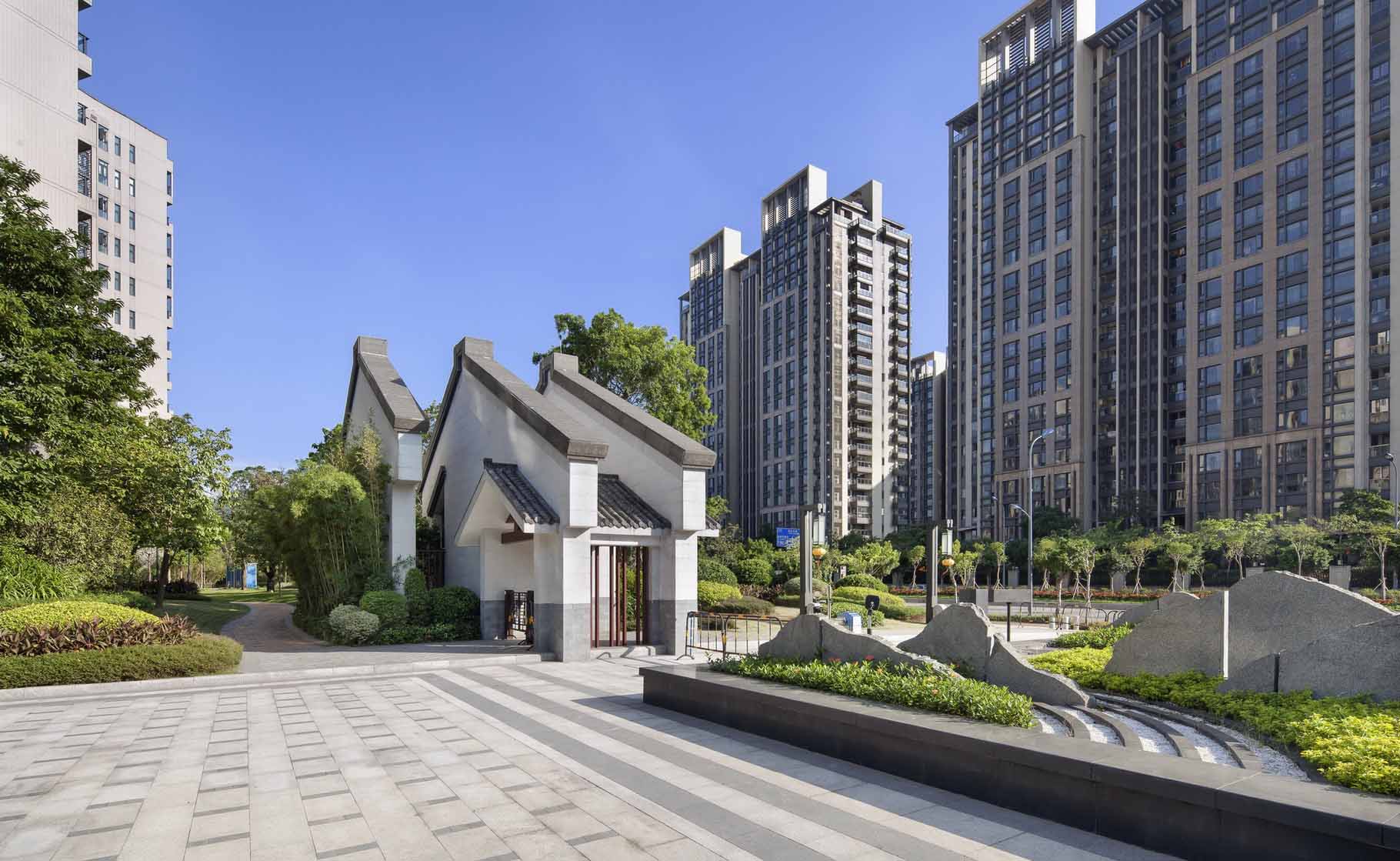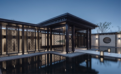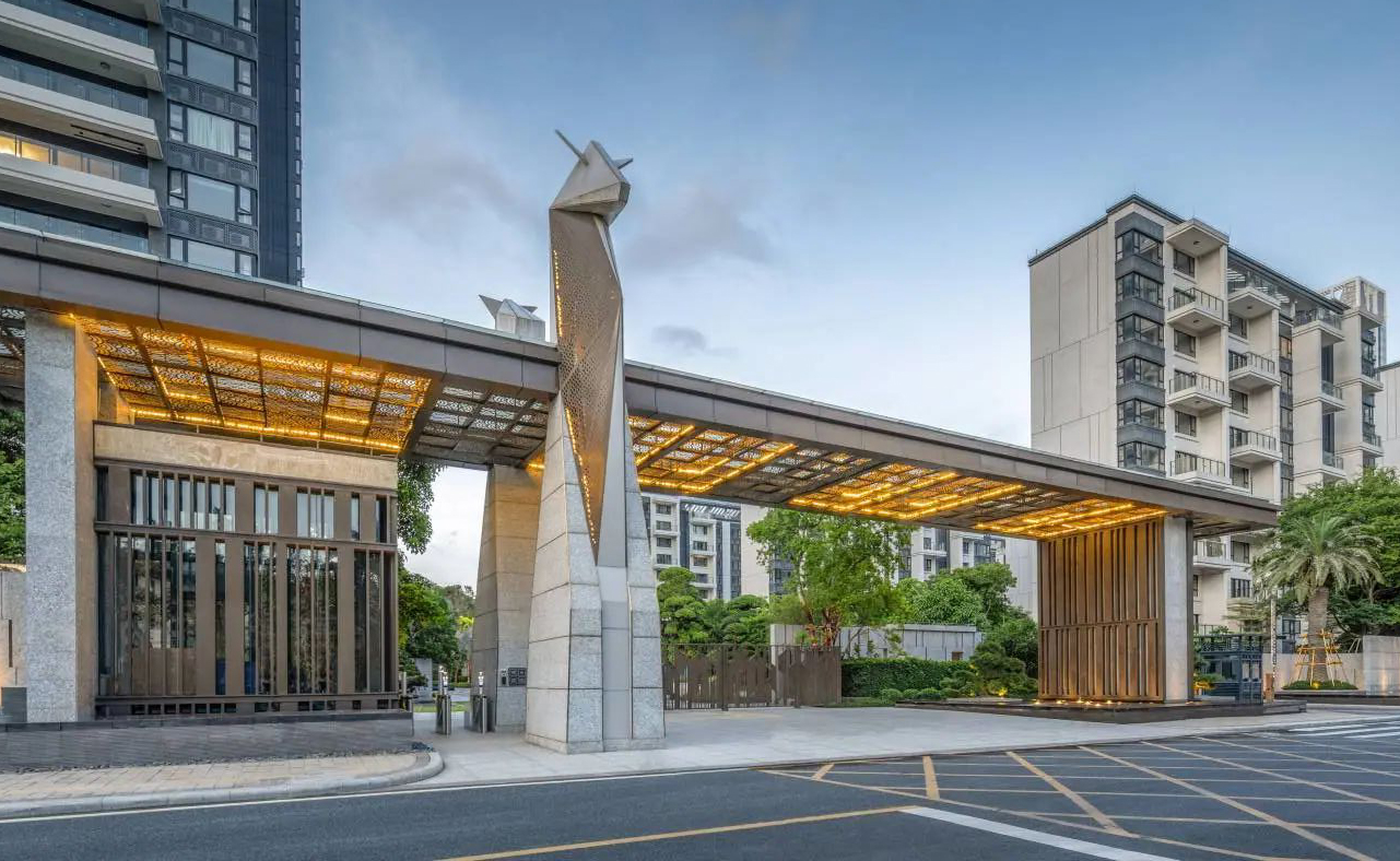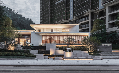 保利玥府位于江门新会古井,,,,,古井与崖山是著名的崖山海战爆发地,,,,,此战之后,,,,,南宋宣告覆灭,,,,,保利玥府设计选择让景观“消隐”,,,,,以极简的手法来陪衬修建让修建与景完善融会。。。。。