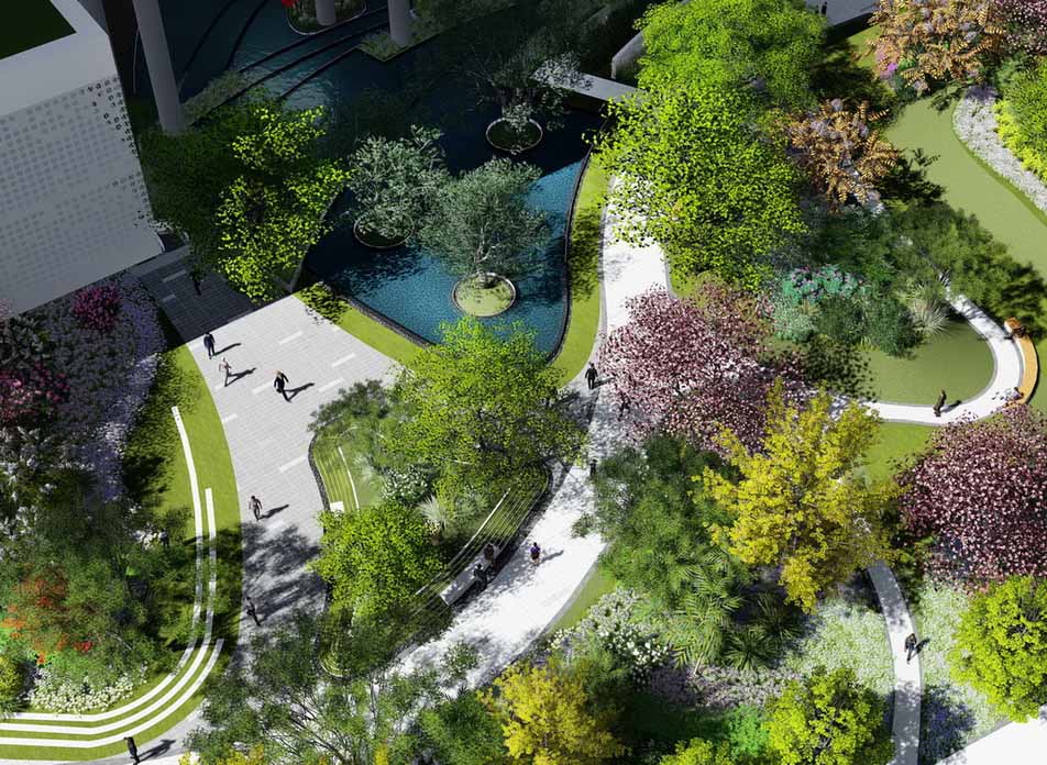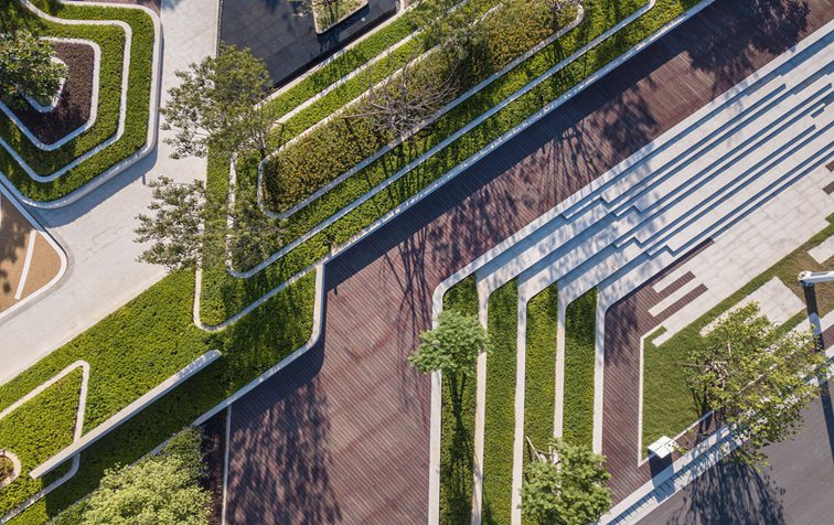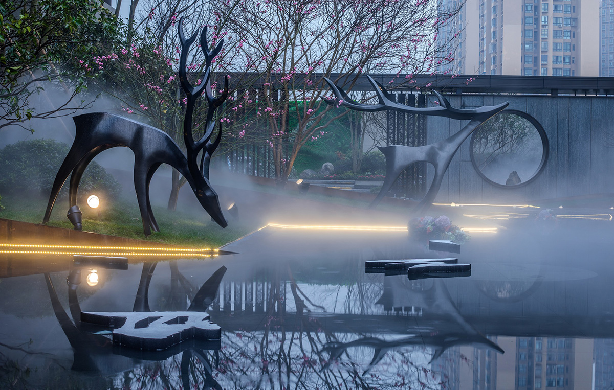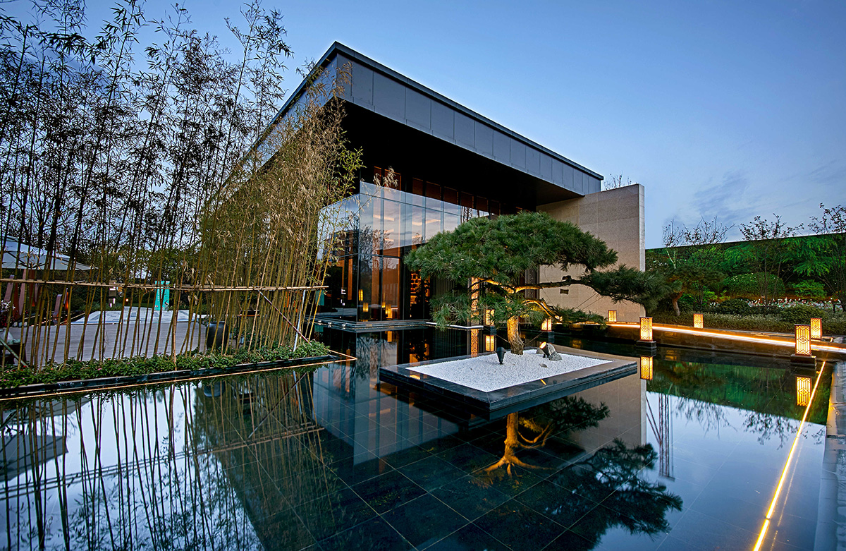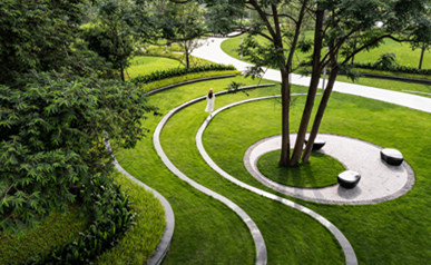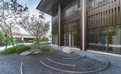 师法自然,,,,,致敬土地,,,,,从水乡城中撷取山影、水境、树声为景观灵感,,,,, 以“折叠花园”演绎今世城中山水自然庭园,,,,,以简约的造景手法续写都会自然景观形态。。。。。
