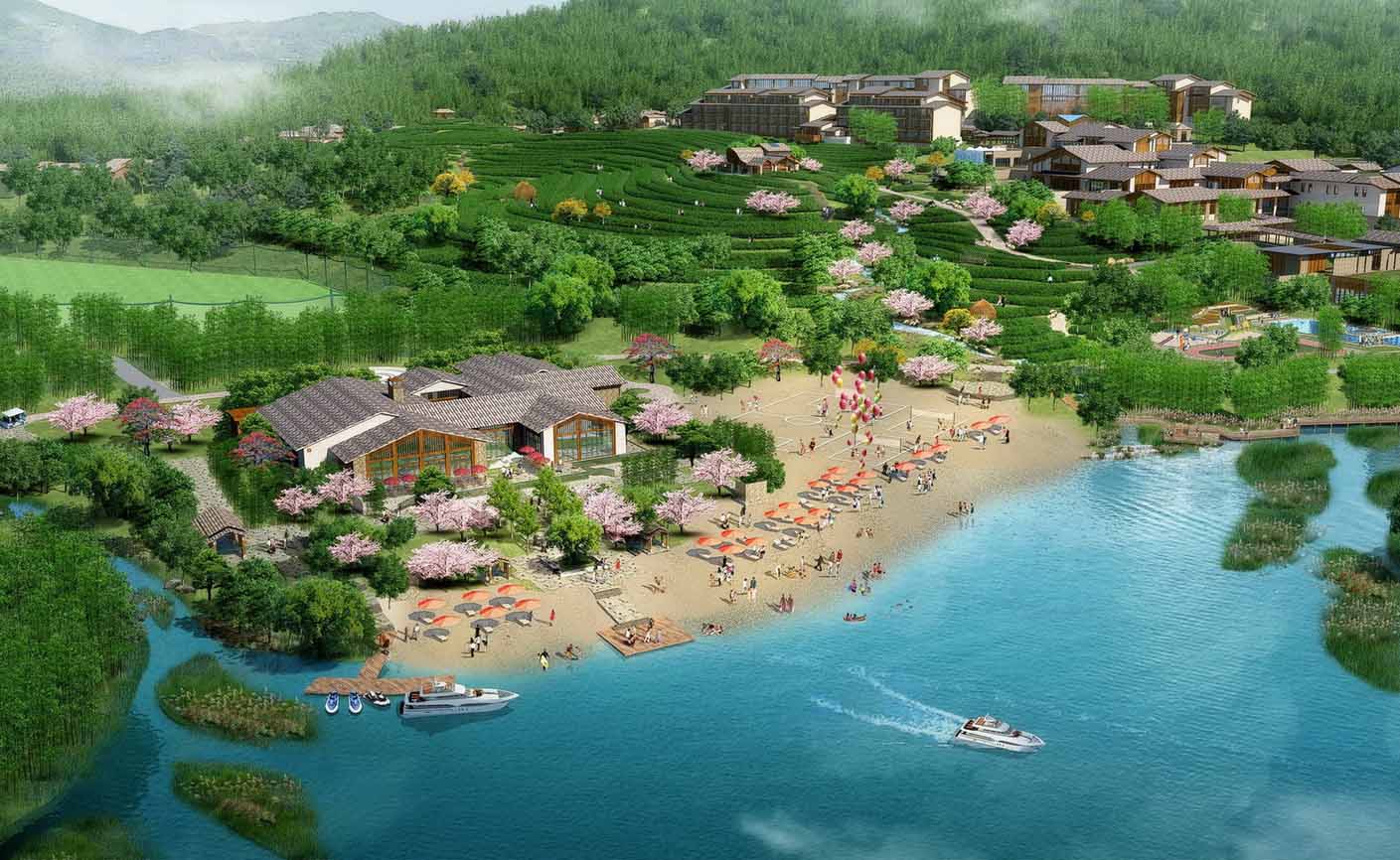 项目位于浙江安吉,,,,,是团结自然资源及本土文化并集度假游(度假村、水上运动、商业小镇、度假旅馆、SPA禅茶)、休闲游(马术中心、羽毛球、网球、射箭、自行车、高尔夫运动等)、生态游(竹林茶园、湿地公园、休闲农庄...