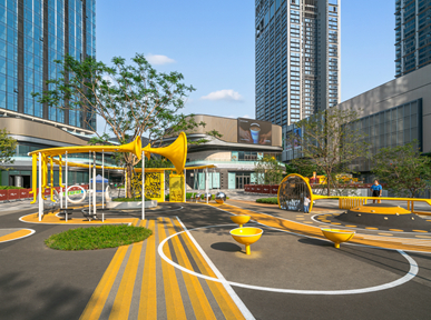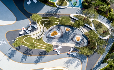 松山湖万象汇延续都会绿色脉络,,,,,在原有绿地肌理上嵌入便民功效空间,,,,,将中轴焦点步行街作为景观重点,,,,,通过空间标准研究,,,,,并接纳循环永动的“圆”作为空间结构构建起一系列场景,,,,,将“圆”融入铺装和景观元件之中,,,,,界说...