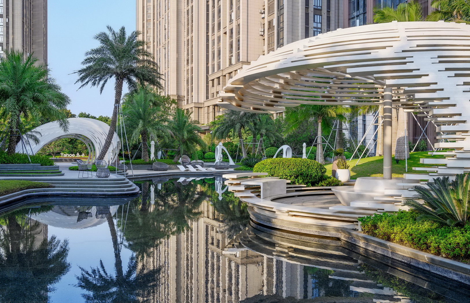 三亚华润海棠悦府中区为项目焦点区域,,,,,面积约29000㎡,,,,,由普邦股份承接景观施工,,,,,融合“山囿”主题,,,,,重构人与自然的亲密毗连,,,,,打造出一片兼具国际视野与在地风情的旅居秘境。。。。。项目巧妙化解园地的重大高差,,,,,以流通的曲线...