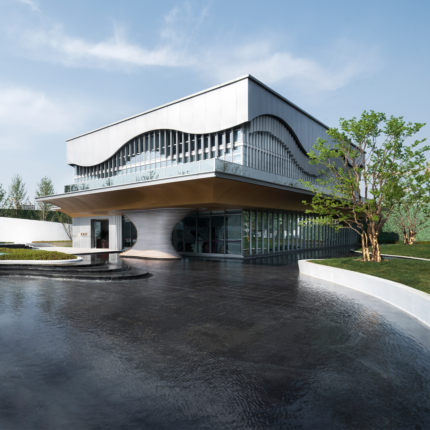梧州美的中央广场摒弃了重大的外在装饰,,,,,以一面白墙、一波碧水、一个涟漪、一叶扁舟营境,,,,,打造都会展厅奇异美感。。。。。项目重视对场合的思索,,,,,构建和重塑着自然与人之间的角色关系,,,,,以少许胜繁复,,,,,将景观与自然情形、属地...