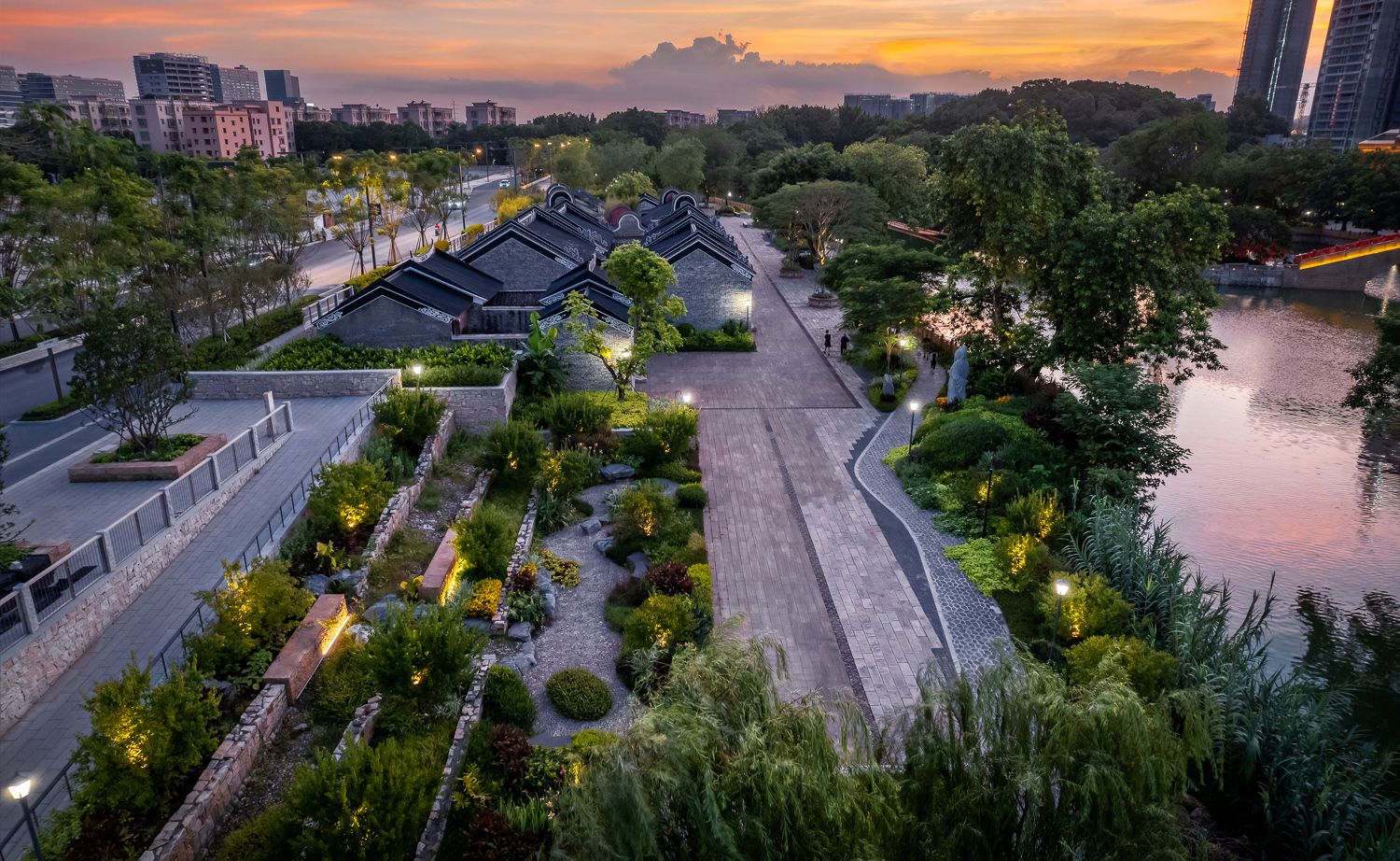 该项目以园地内的客栈、榕树作为切入点,,,,,最大限度保存了原园地的下层、原生大乔木以及原厂佃农栈的仓梁木、红砖等修建物料,,,,,将之重新运用到项目建设当中去,,,,,用园林的语言描绘出人们心中对聚龙湾的印记。。。。。在驳岸空间的...