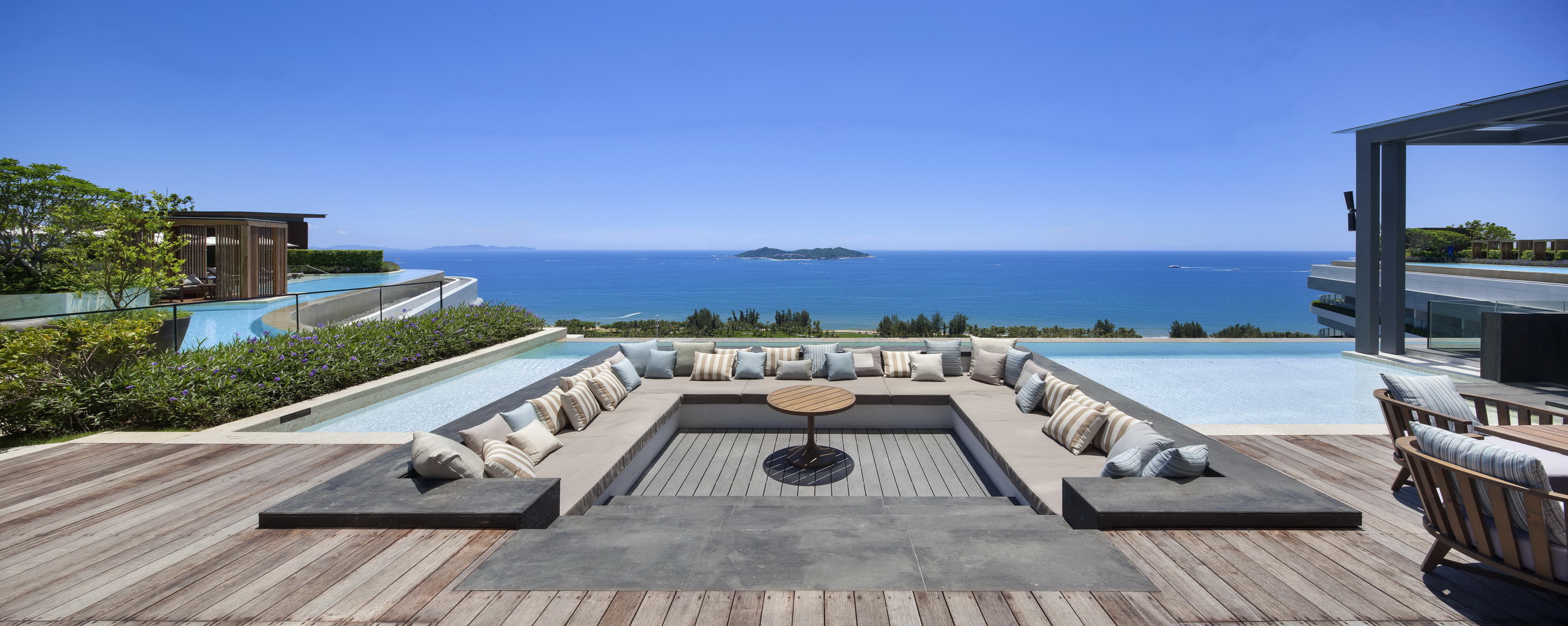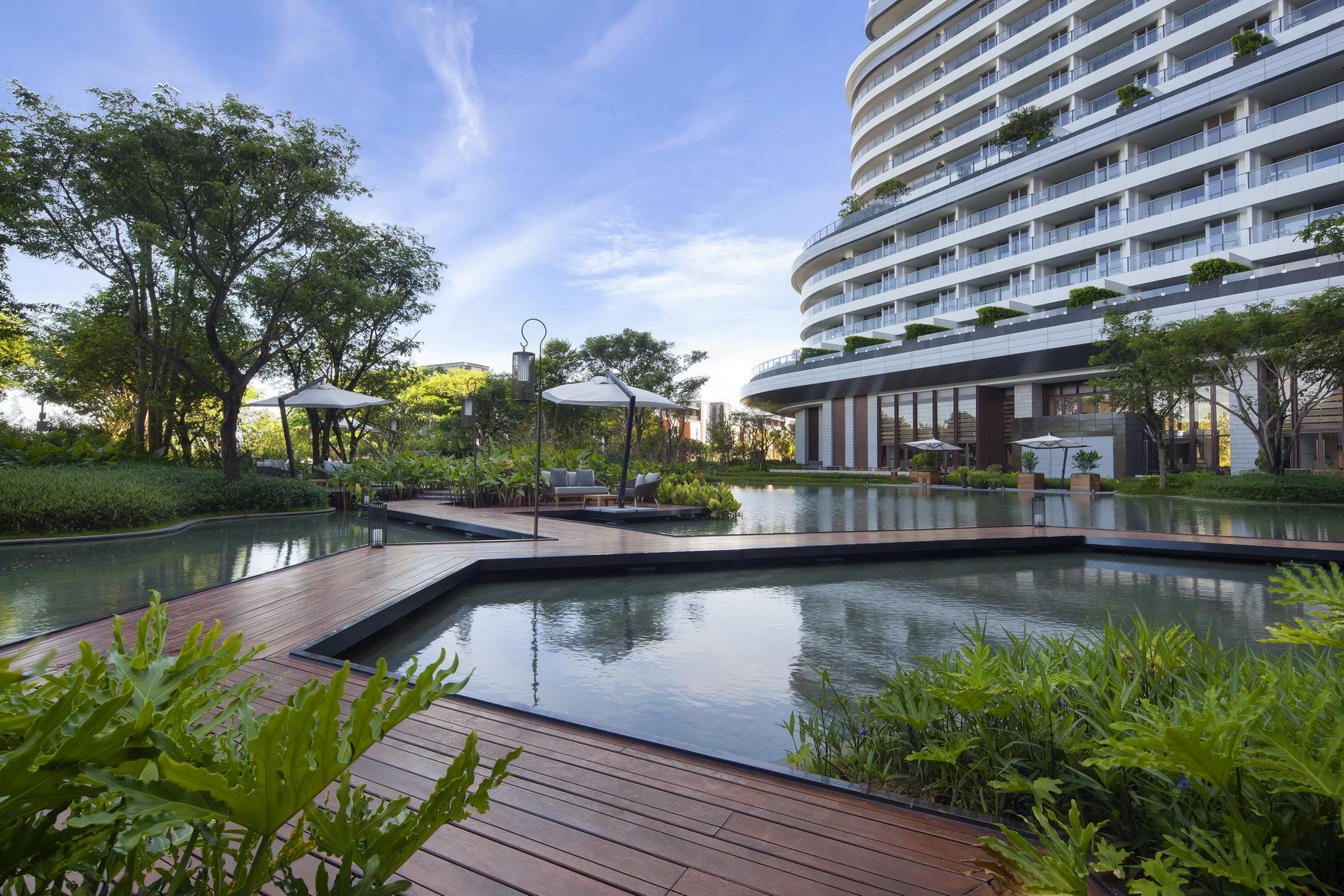 三亚保利漂亮旅馆坐落于三亚海棠湾之上,,,,,,,与三亚财经国际论坛永世会址、海棠湾广场相邻,,,,,,,这是漂亮旅馆集团继北京之后在中国开设的第二家旅馆,,,,,,,也是其在海内的首家度假旅馆。。。。。。。。普邦股份依附在海滨园林及度假旅馆建设方面积累的富厚履历,,,,,,,以热带植物、艺术小品配以海洋元素,,,,,,,自然地将景观从修建过渡到园林当中,,,,,,,并用返璞归真与平庸的手法构建出低奢的空间。。。。。。。。项目中各设计元素相互呼应却又各具特色,,,,,,,所打造的惬意度假空间与客人建设起了亲密的关联性。。。。。。。。